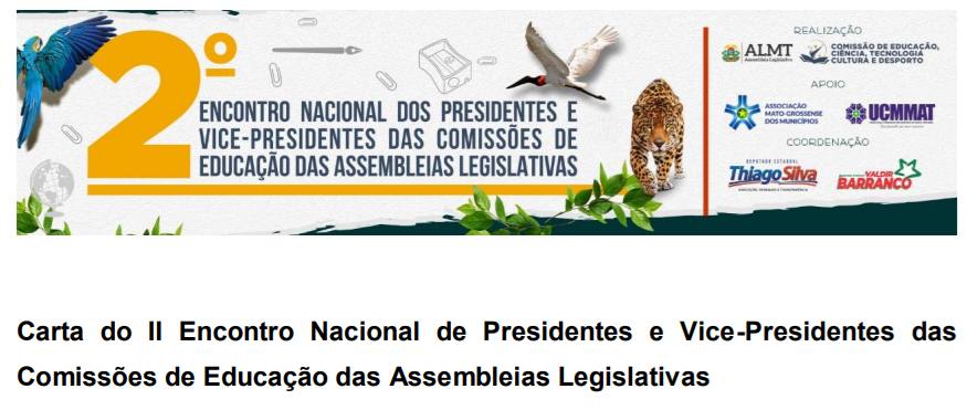 Clique aqui e faça o download da Carta de Cuiabá, resultado do 2º Encontro Nacional de Presidentes e Vice-Presidentes de Comissões de Educação das Assembleias Legislativas